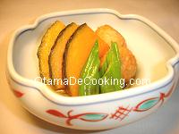 かぼちゃは一度揚げることで煮崩れしにくくなります。 |