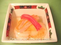 海老は酢に漬ておくと身が固くなるので食べる直前に南蛮酢と和えます。 |