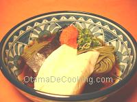よく水を切った茶そばと甘鯛(昆布も一緒に)を器に盛ります。