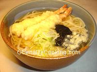 醤油を一切使わないので味の決め手は塩加減です。だしの香り豊かなうどんだしと天ぷらの相性も抜群です。 |
