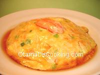 お皿に盛ったご飯の上に焼きあがった玉子焼きをのせ、あんをかけて出来上がり。 |