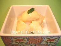 煮汁を切ったたけのこと烏賊をクリーム味噌と和えお皿に盛り付けます。 |