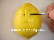 Cut the lemon skin as above images. |