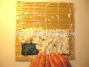 the yaki-Nori on the Makisu with shiny side down. |